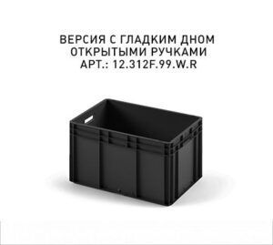 Этот контейнер сочетает открытые ручки и сплошное дно, что делает его универсальным и удобным для транспортировки как мелких, так и крупных товаров. Он подходит для различных условий эксплуатации, обеспечивая надежность и безопасность хранения.