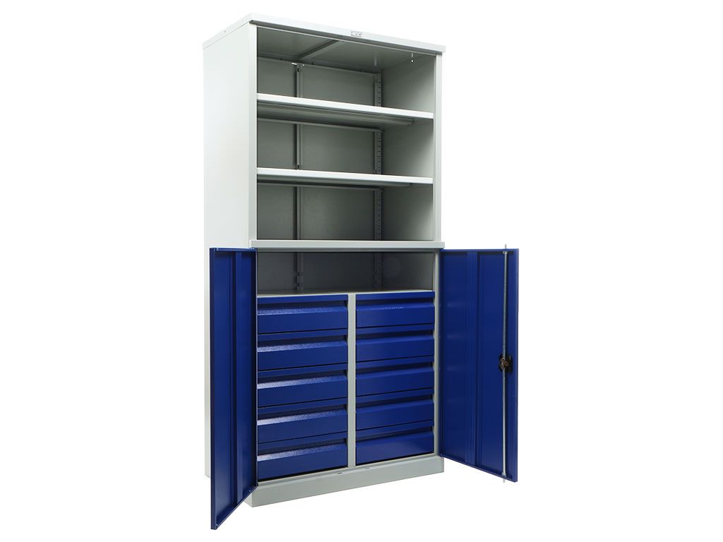 Шкаф инструментальный TC-1995/2-102215 предназначен для удобного хранения различных инструментов и комплектующих. Он оснащен дополнительными полками и ящиками, что помогает эффективно организовать пространство для хранения материалов.