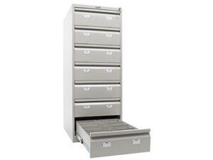 Это классический вариант картотечных шкафов, который идеально подходит для хранения карточек и файлов. Выдвижные ящики обеспечивают быстрый доступ к каждому документу и позволяют поддерживать порядок.