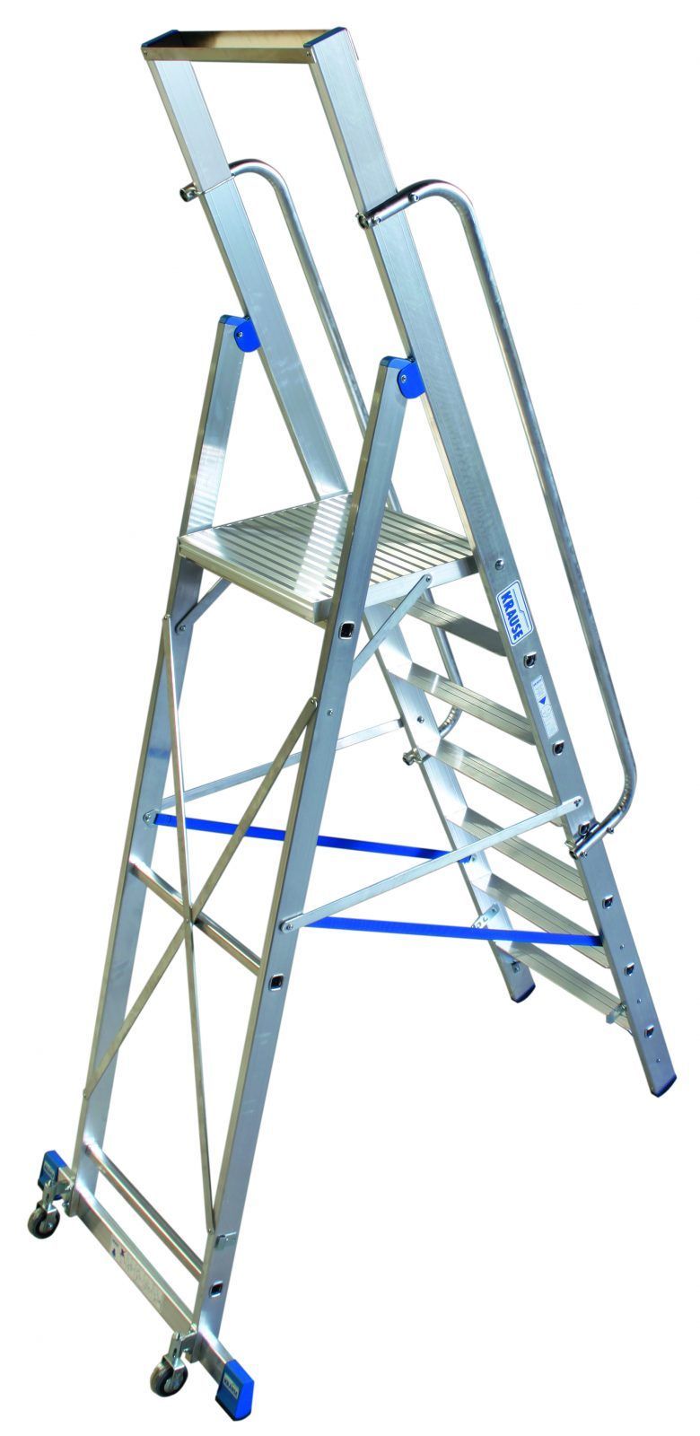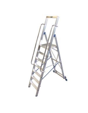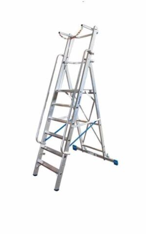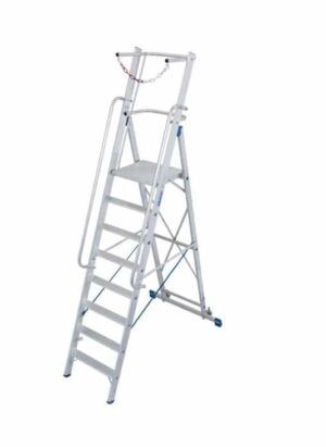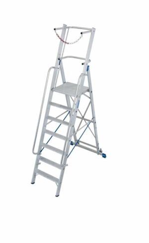 Стремянки с большой площадкой обеспечивают удобство при перемещении по рабочим зонам. Они часто оснащены колесами или легко маневрируются вручную, что позволяет быстро и эффективно перемещать их по складу или производственному помещению.