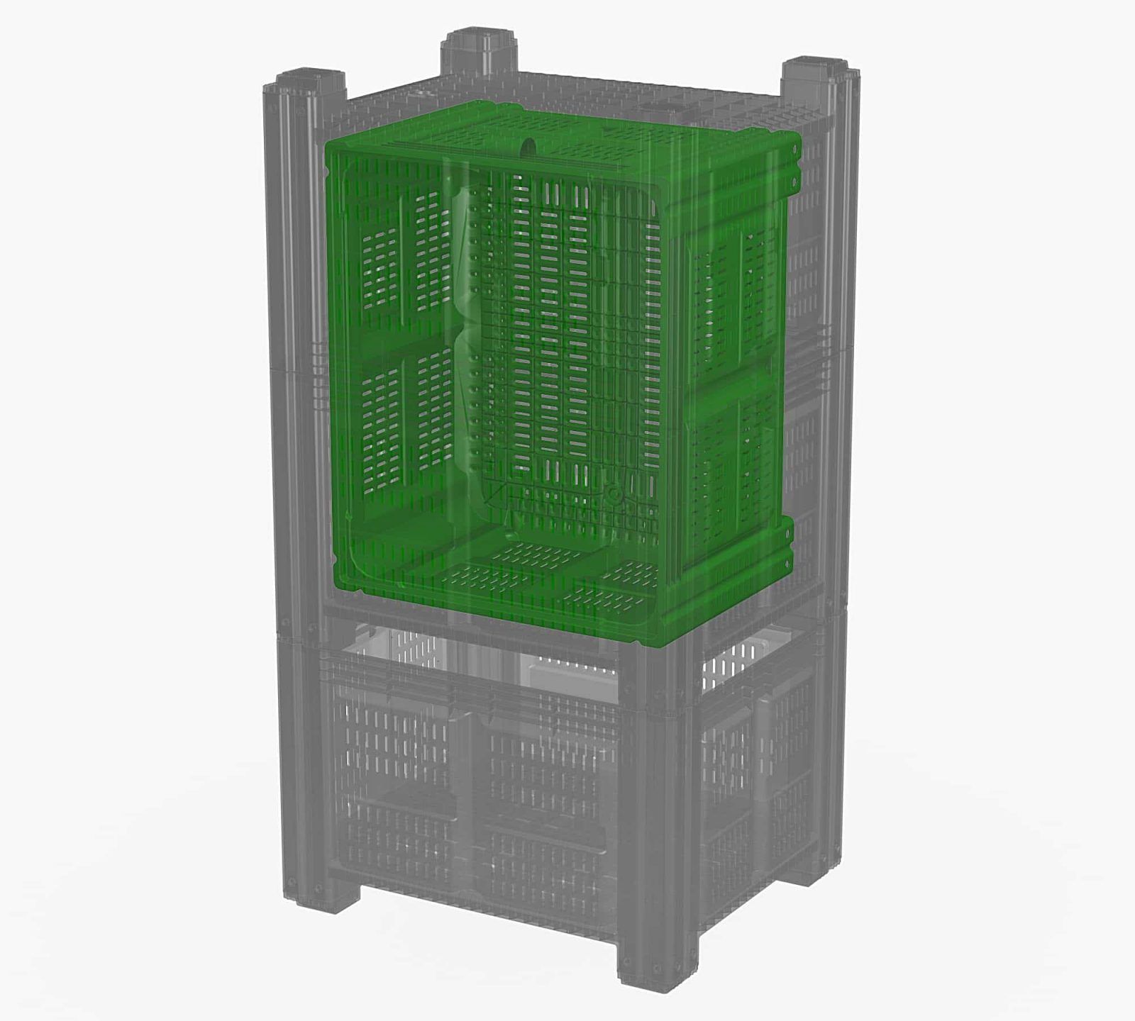 - конструкция снабжена дополнительными ребрами жесткости, благодаря этому контейнер способен выдерживать большие нагрузки при штабелировании и прочен к ударам;