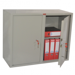 Шкаф представляет собой цельносварную металлическую конструкцию прямоугольной формы, соединение элементов которой выполнены методом сварки сплошным швом по контуру прилегания элементов. Корпус и дверь шкафа изготовлены из стального листа толщиной 1,5 мм. Дверь изнутри усилена панелью коробчатого сечения из стального листа толщиной 0,8 мм. В двери шкафа установлен врезной 8-ми сувальдный замок фирмы «ПРО САМ» (Россия). Внутри шкафа располагается 1 полка. Шкаф имеет 2 двери. Петли шкафа – внутренние. Окраска — полимерное порошковое покрытие, цвет серый.
