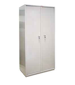 Шкаф представляет собой цельносварную металлическую конструкцию прямоугольной формы, разделенную вертикальной перегородкой на 2 независимых отделения, запираемых собственной дверью. В каждом отделении располагается по 4 полки. Корпус и двери шкафа изготовлены из стального листа толщиной 1,2 мм. Двери изнутри усилены панелью коробчатого сечения из стального листа толщиной 0,8 мм. В дверях шкафа КБС-10н установлен врезной сувальдный замок. Шкаф имеет подиум (подставку) высотой 47 мм для возможности размещения его вплотную к стене. Петли шкафа – внутренние. Окраска — полимерное порошковое покрытие, цвет серый.