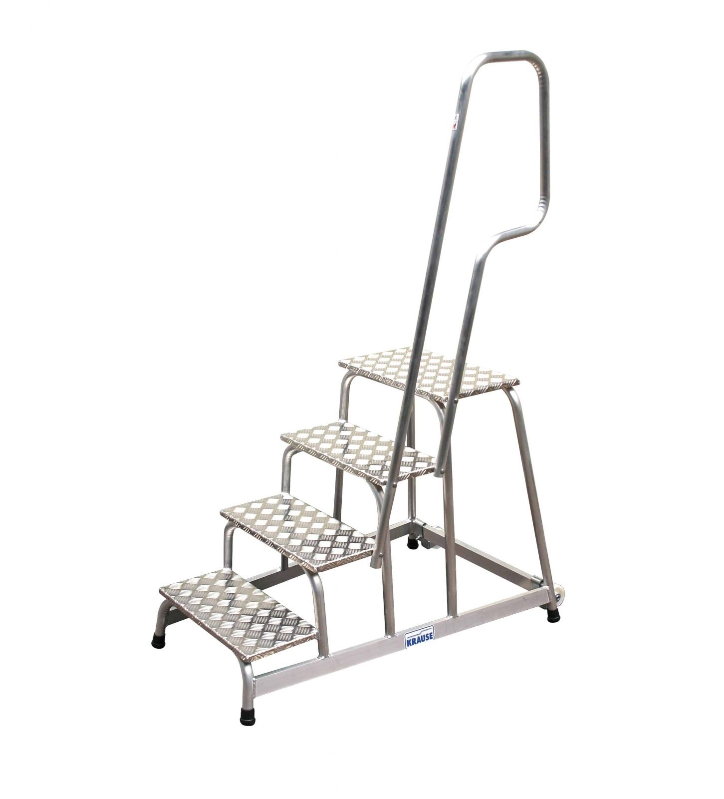 Безопасность работника, стоящего на площадке, обеспечивает нескользящая поверхность ступеней и площадки, а также удобная дуга-поручень для поднятия и держания в процессе работы.