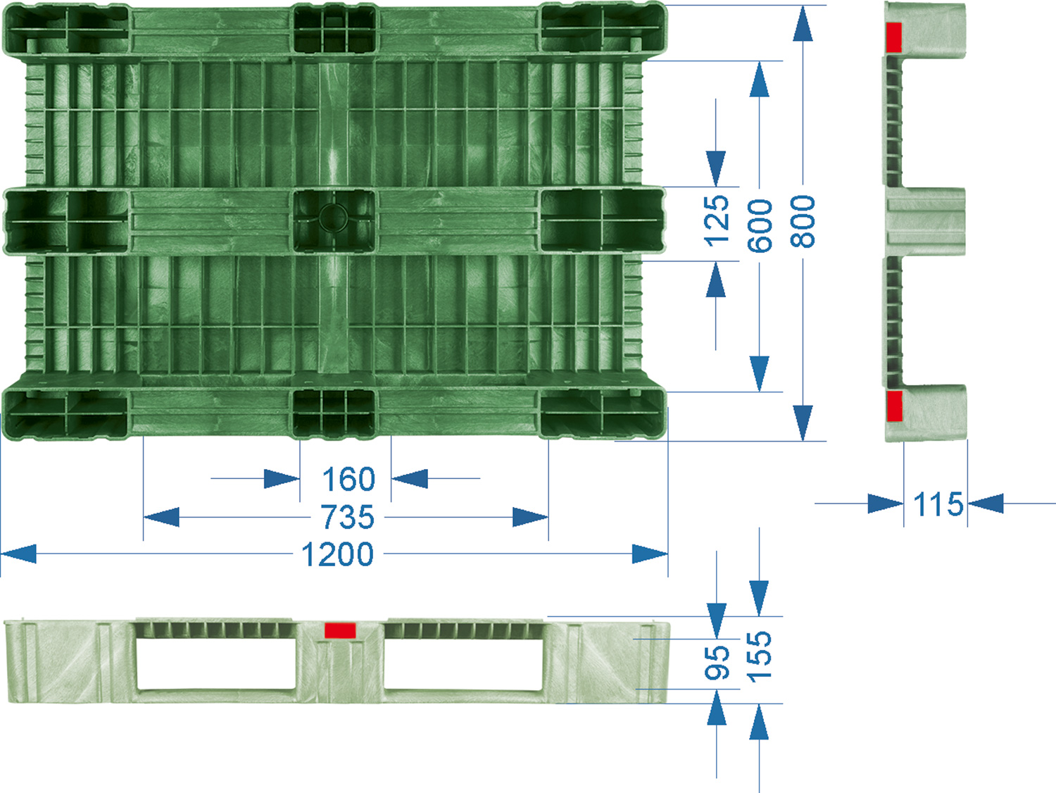 • Скошенные боковые ребра жёсткости уменьшают повреждения паллет при погрузо-разгрузочных работах