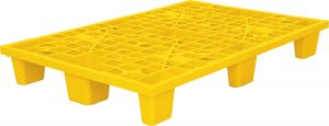 • Усиленный пластиковый паллет на трёх цельнолитых полозьях