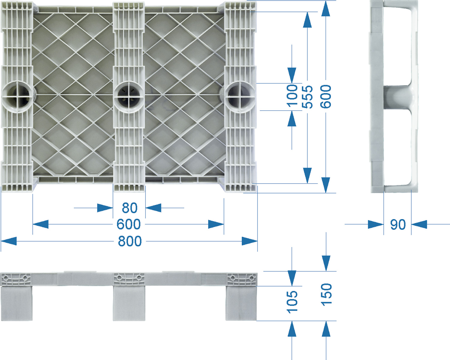 - Пластиковый полупаллет на 3-х полозьях.