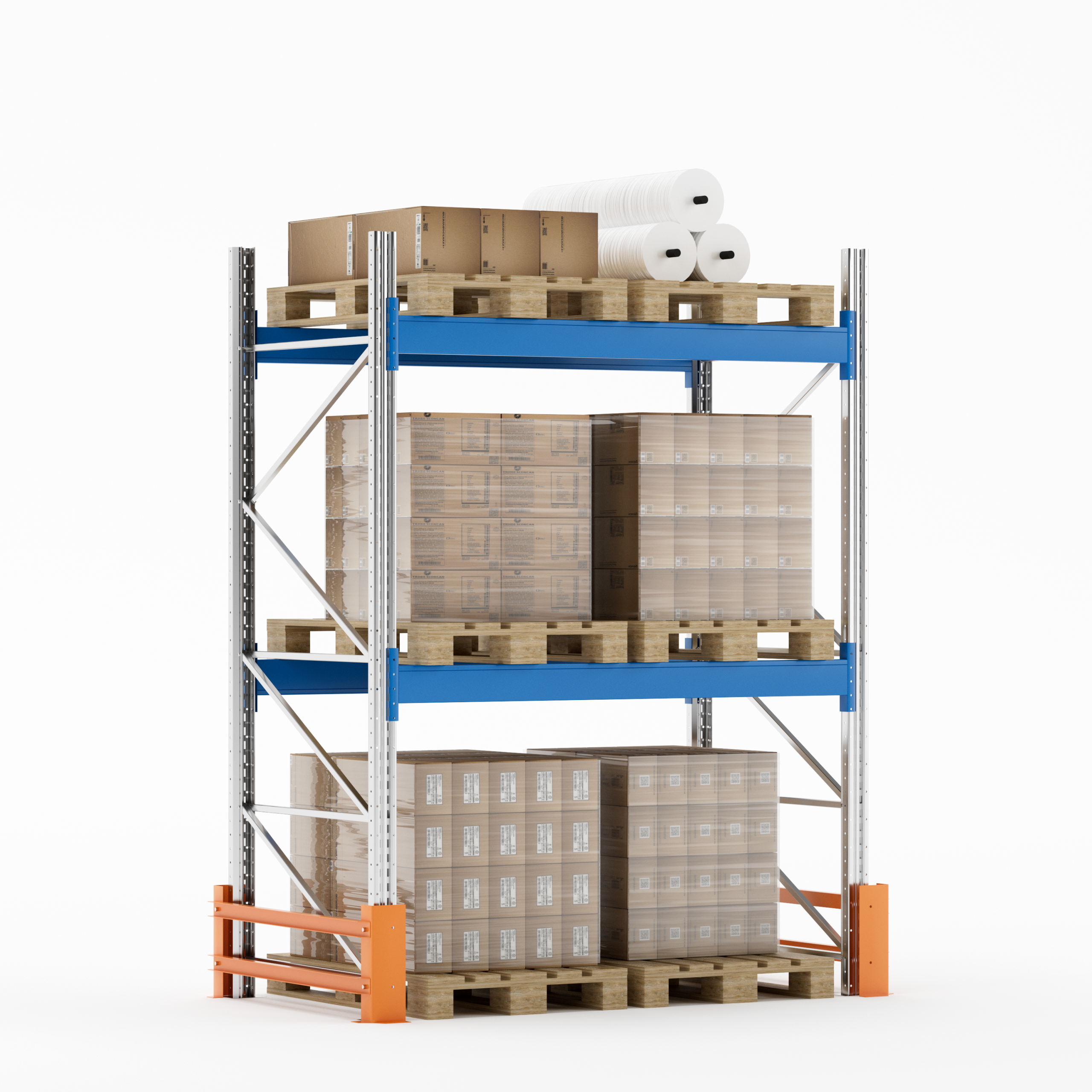 • Стеллажи данного типа используются для размещения паллетированных грузов. Удобны для хранения широкого ассортимента продукции, обеспечивают удобный и быстрый доступ к каждому поддону.