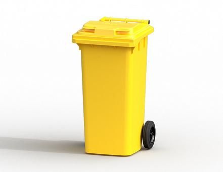 Передвижной мусорный контейнер Iplast 120 л. желтый, с желтой крышкой без педали
