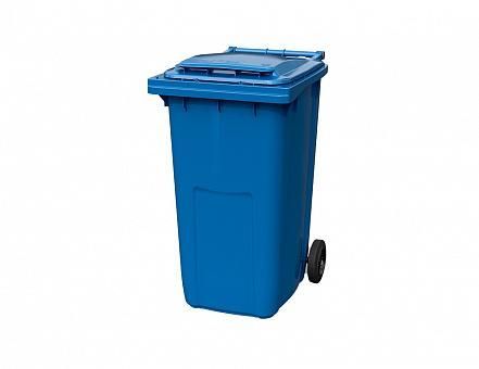 Бак для мусора 240л имеет крышку и два колеса, что облегчает обращение с ним и его передвижение.