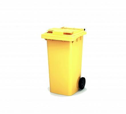 Бак для мусора 240л имеет крышку и два колеса, что облегчает обращение с ним и его передвижение.
