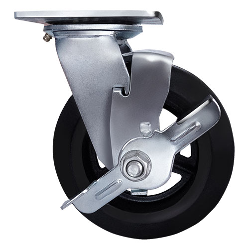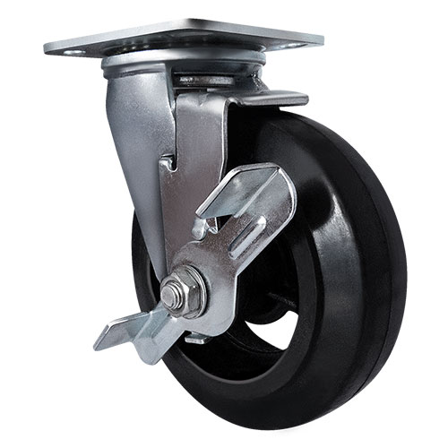 Колесо большегрузное обрезиненное поворотное с тормозом Longway SCDB55 предназначено для строительного, коммунального и складского оборудования. Шинка выполнена из термопластичной черной резины. Материал отличается высокой износостойкостью и сопротивляемостью к неблагоприятным воздействиям внешней среды. Колесо не требовательно к качеству напольного и дорожного покрытия. Обод выполнен из чугуна и оснащен смазочным ниппелем. В оси установлен роликовый подшипник. В поворотном механизме установлен двухрядный шариковый подшипник с пресс-масленкой. Кронштейн — сварной, изготовлен из оцинкованной листовой стали. Диапазон температур — от -35ºC до +50ºC.