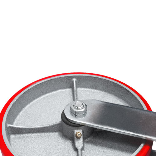 Колесо большегрузное полиуретановое поворотное Longway SCP63 предназначено для оснащения складского, транспортного строительного оборудования и тяжелых механизмов. Шинка выполнена из полиуретана. Материал отличается высокой износостойкостью и большой грузоподъемностью. Колесо отлично переносит динамические, статические и ударные нагрузки, хорошо служит на любых твердых поверхностях. Обод выполнен из чугуна, оснащен роликовым подшипником в оси и смазочным ниппелем. В поворотном механизме установлен двухрядный шариковый подшипник с пресс-масленкой. Кронштейн — сварной, изготовлен из оцинкованной листовой стали. Диапазон температур — от -35ºC до +50ºC.