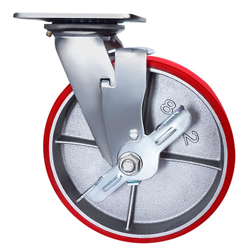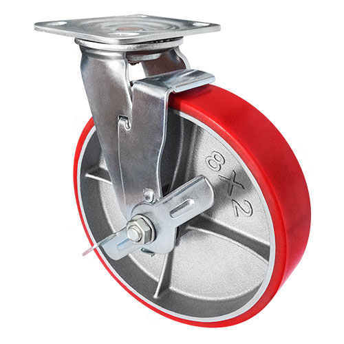 Колесо большегрузное полиуретановое поворотное с тормозом Longway SCPB42 предназначено для оснащения складского, транспортного строительного оборудования и тяжелых механизмов. Шинка выполнена из полиуретана. Материал отличается высокой износостойкостью и большой грузоподъемностью. Колесо отлично переносит динамические, статические и ударные нагрузки, хорошо служит на любых твердых поверхностях. Обод выполнен из чугуна, оснащен роликовым подшипником в оси и смазочным ниппелем. В поворотном механизме установлен двухрядный шариковый подшипник с пресс-масленкой. Кронштейн — сварной, изготовлен из оцинкованной листовой стали. Диапазон температур — от -35ºC до +50ºC.