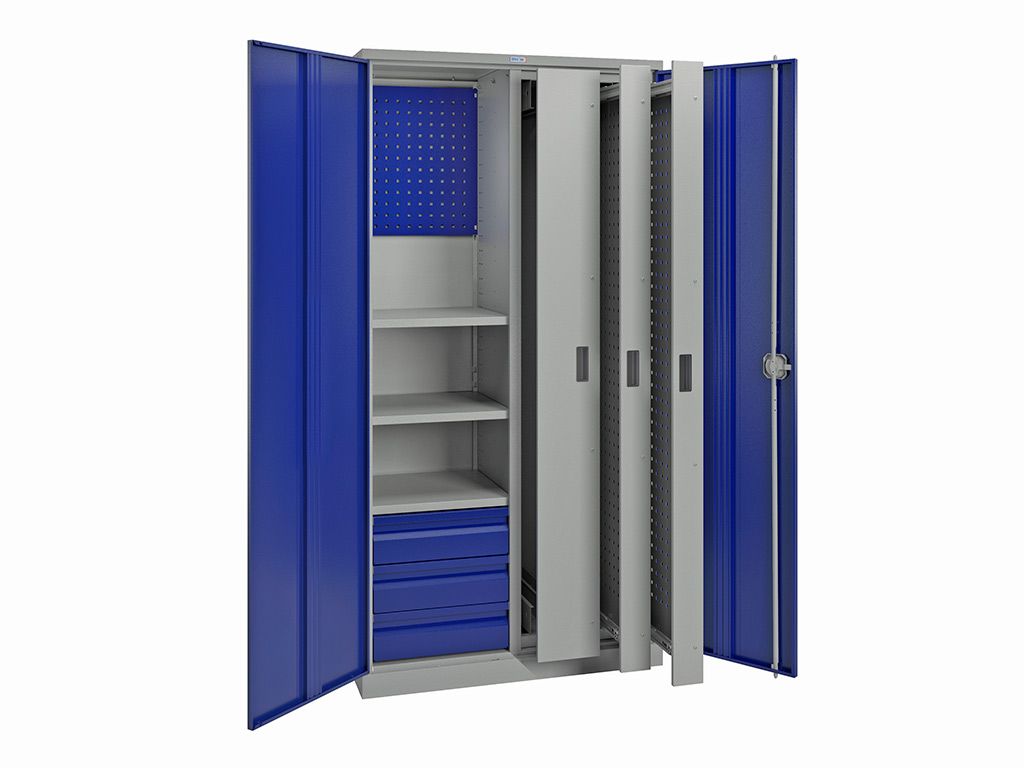 Инструментальный шкаф предназначен для хранения инструментов, слесарных приспособлений и других изделий на предприятиях, в мастерских и автосервисах. Шкаф разделен на 2 секции перегородкой, правую секцию инструментального шкафа занимает Комплект ниш TC 1995, состоящий из трёх выкатных элементов: одной широкой (ширина лицевой панели 196 мм) и двумя узкими (ширина лицевой панели 93 мм). Выкатные ниши представляют собой перфорированный экран во всю высоту шкафа. Комплект ниш предназначен для организации вертикального хранения в шкафу.