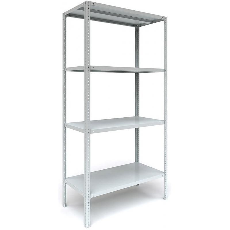 - 4 полки с максимальной распределенной нагрузкой 200 кг на каждую полку, причем использование дополнительного комплекта на одну полку Г-образного или Т-образного усилителя увеличивает грузоподъемность стеллажа на 10%, использование Г-образных усилителей на всех полках увеличивает грузоподъемность на 20%, использование Т-образных усилителей на всех полках увеличивает грузоподъемность на 50 %;