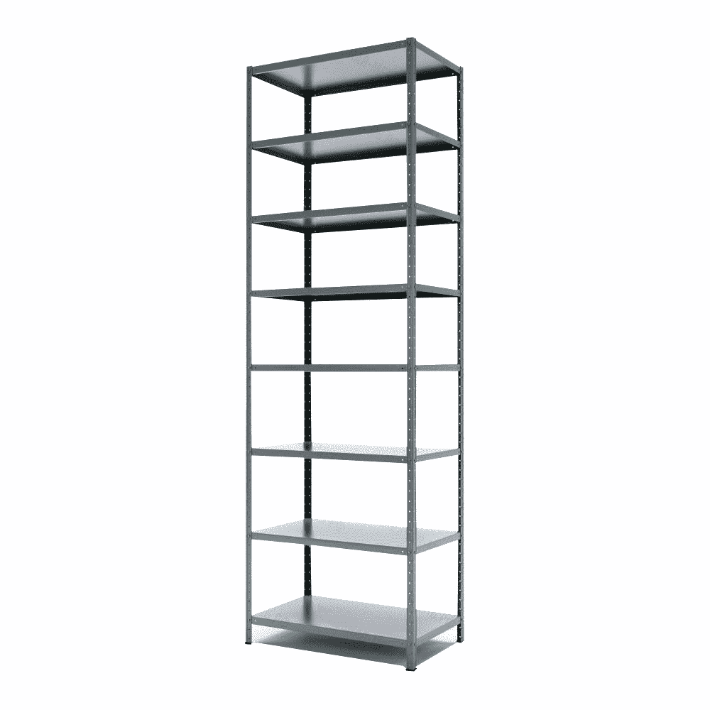 - 8 полок с максимальной распределенной нагрузкой 140 кг на каждую полку, причем использование дополнительного комплекта на одну полку Г-образного или Т-образного усилителя увеличивает грузоподъемность стеллажа на 10%, использование Г-образных усилителей на всех полках увеличивает грузоподъемность на 20%, использование Т-образных усилителей на всех полках увеличивает грузоподъемность на 50 %;