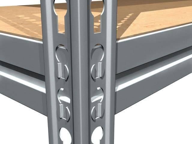 - стоек - изготавливаются из высококачественной профилированной стали и имеют дополнительные ребра жесткости. Позволяют конструкции выдерживать равномерно распределенную нагрузку до 2200 кг (до 300 кг. на одну полку). Шаг перфорации - 50 мм. Поставляются в вакуумной упаковке по 4 штуке;