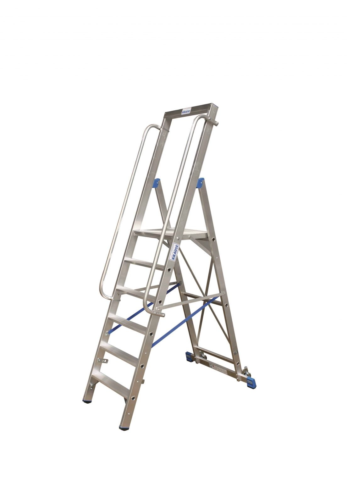 Алюминиевая профессиональная стремянка с большой площадкой.