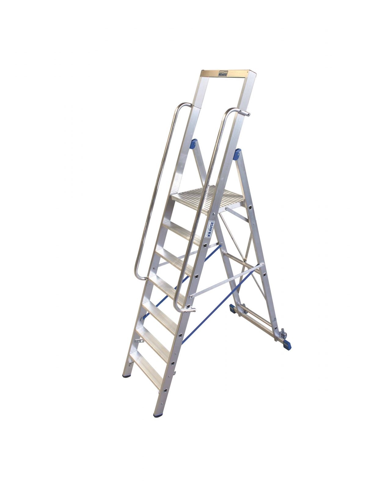 Алюминиевая профессиональная стремянка с большой площадкой.