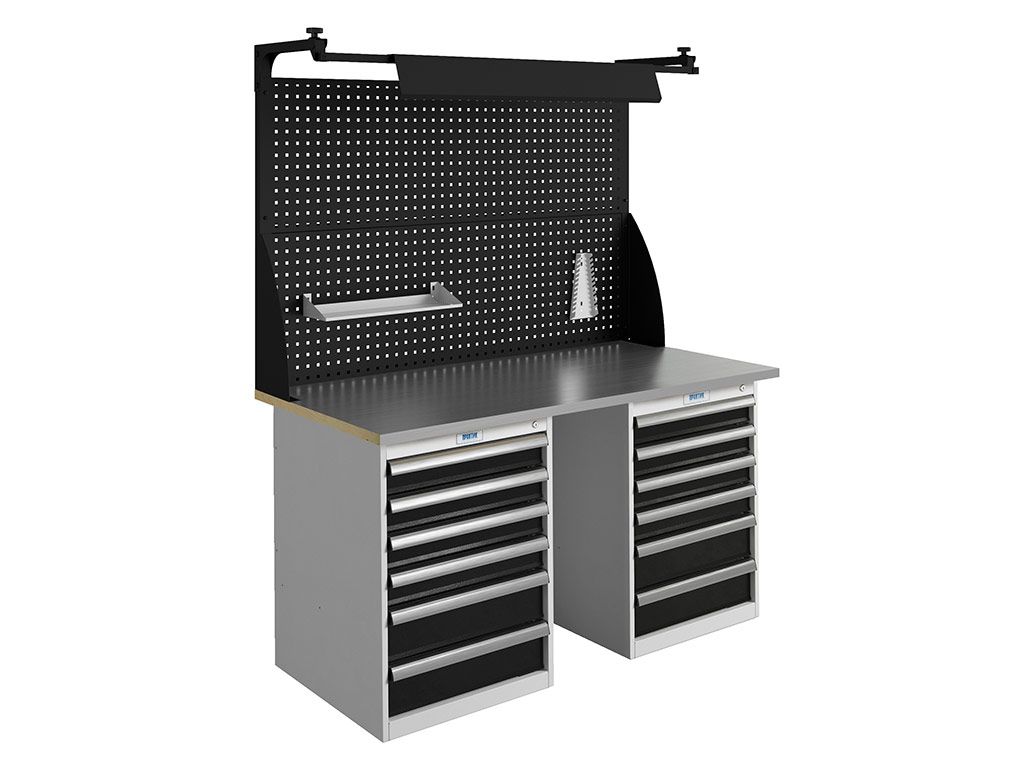 Металлический слесарный (столярный) верстак серии T – новый верстак повышенной устойчивости к нагрузкам. Верстак данной серии изготовлен из высококачественной стали и предназначен для удобной организации рабочего места в мастерских, автосервисах, на производстве или в учебных заведениях. Одной из важных особенностей сверхтяжелых верстаков серии T являются их надежность и модульный принцип комбинирования в различных комплектациях.