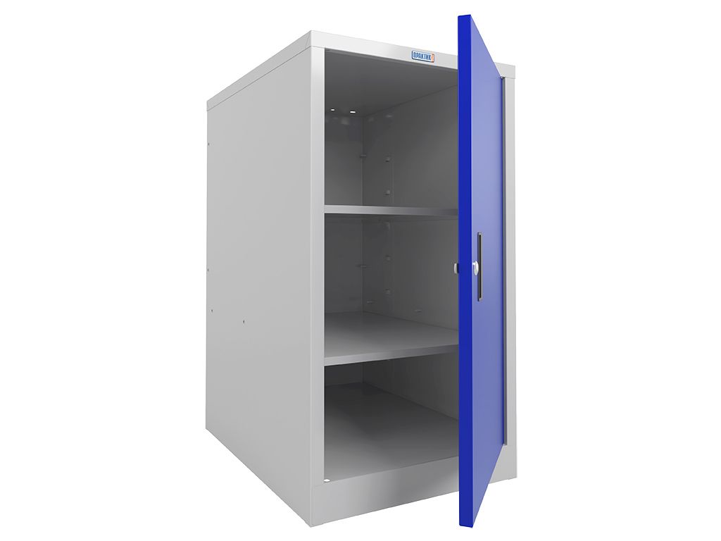 • Верстак окрашен порошковой краской, цвет покрытия корпуса серый шагрень (RAL 7038), лицевая панель дверцы тумбы – синий шагрень (RAL 5002)